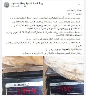 ونشرت صفحة الوزارة صورة البضاعة المصادرة التي تم إتلافها بحسب المصدر.