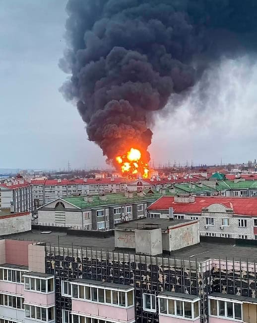 وطن – فيما يمكن اعتباره أول هجوم اوكراني على روسيا بشكل مباشر، تداول ناشطون عبر مواقع التواصل الاجتماعي، مقطع فيديو يظهر اشتعال النيران في منشأة نفطية داخل الأراضي الروسية.