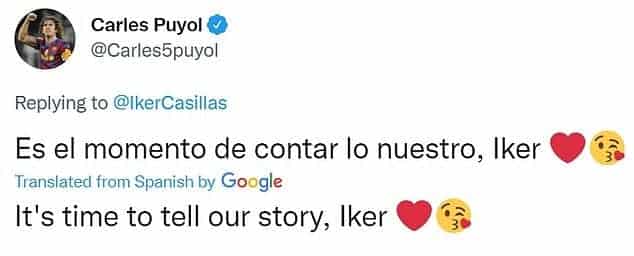 ليردّ عليه “كارلوس بويول” في تغريدة يقول فيها: “حان الوقت لنخبر الجميع بقصتنا يا إيكر”.