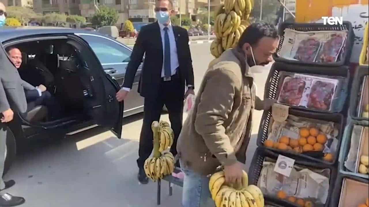 ووثق المقطع الذي رصدته “وطن”، وقوف سيارة السيسي أمام بسطة الفواكه، وفتحه للباب الخلفي لها.