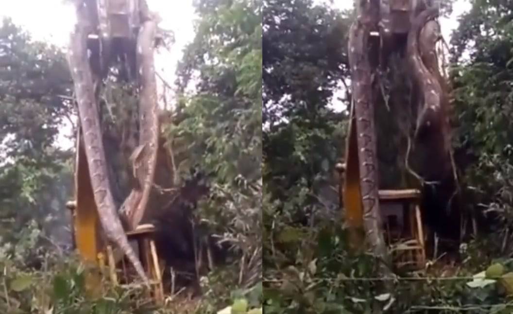 فيديو صادم .. ثعبان عملاق بطول 10 امتار يرعب سكان هذه الجزيرة