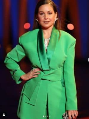 أما من الناحية الجمالية، فقد اعتمدت الإعلامية اللبنانية مكياجا قويا، وارتدت مجوهرات ناعمة.