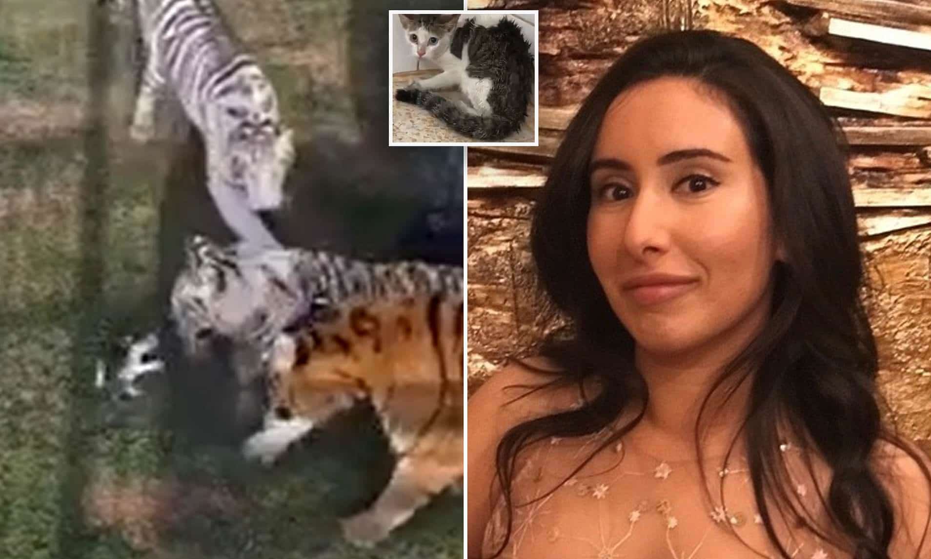 وقالت الصحيفة في تقرير إن الأميرة الإماراتية لطيفة شاركت لقطات لقطّة ضالّة طاردتها نمورها. قبل أن تُنقذ القطة من الحظيرة وتتبناها.
