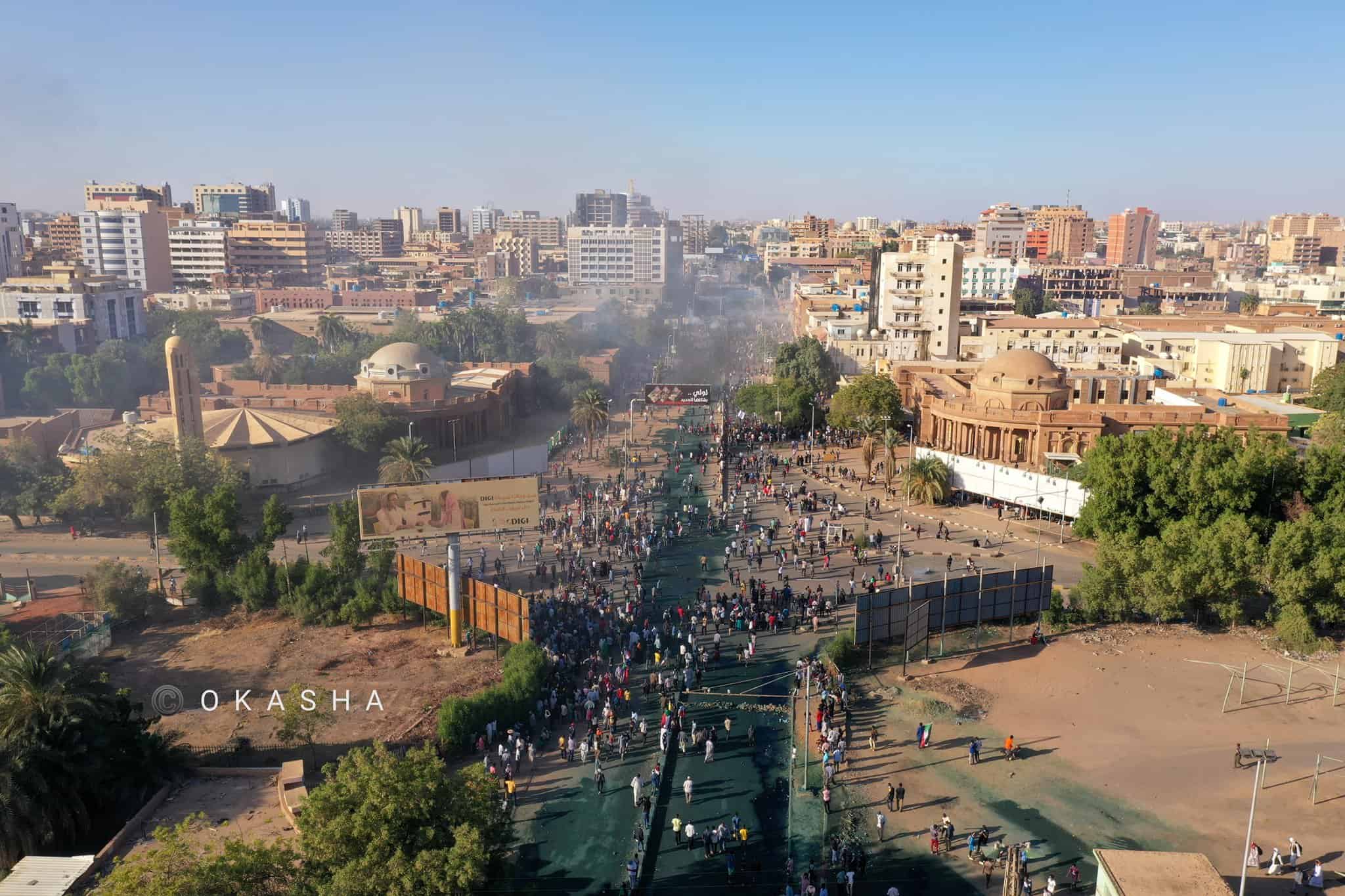 وشارك الآلاف في احتجاجات في شوارع العاصمة الخرطوم، في مسيرة أمام القصر الرئاسي ورفع المتظاهرون الأعلام السودانية ودعوا الجيش إلى “العودة إلى الثكنات”.