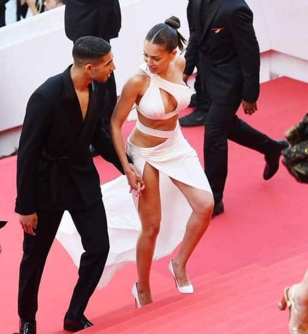 أشرف حكيمي يثير غضب المغاربة بسبب إطلالة زوجته الفاضحة في مهرجان “كان”