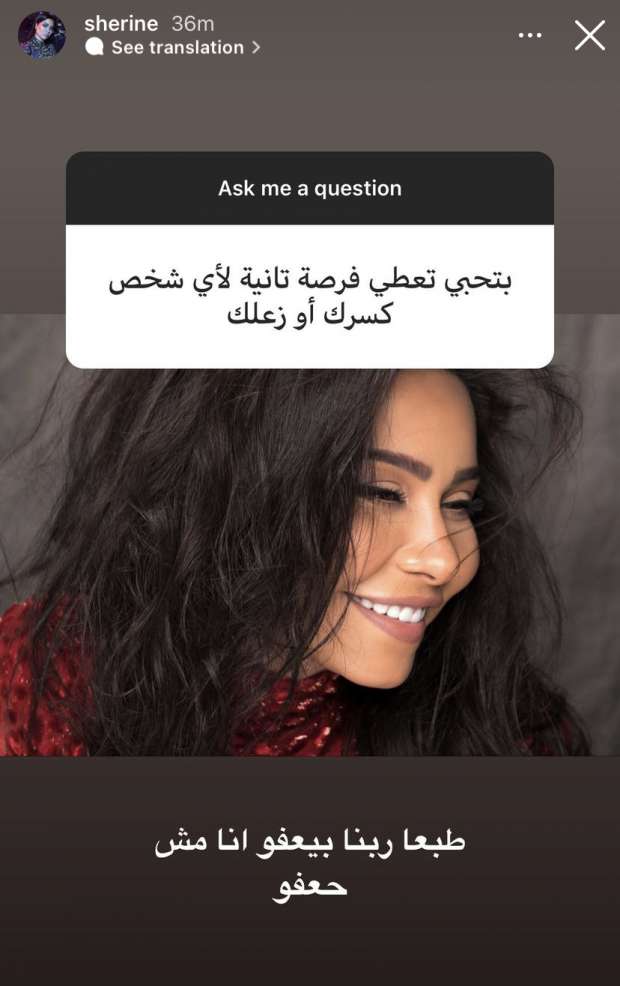 فأجابت شيرين: “طبعا، ربنا بيعفو انا مش هعفو؟”.
