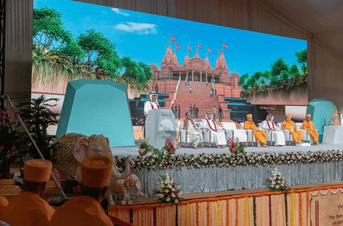 محمد بن زايد يضع حجر الأساس لأول معبد هندوسي بالإمارات.. حقيقة الصورة التي غزت المواقع