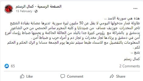 وأضاف أن هذه الممارسات المشبوهة تتم بالشراكة مع رؤوس كبيرة جدا بالبلد من العائلة الحاكمة، ويحميها ضباط رؤساء أفرع أمن في دمشق و يرتادها تجار مخدرات و تجار دم وأمراء حرب وضباط أمن.