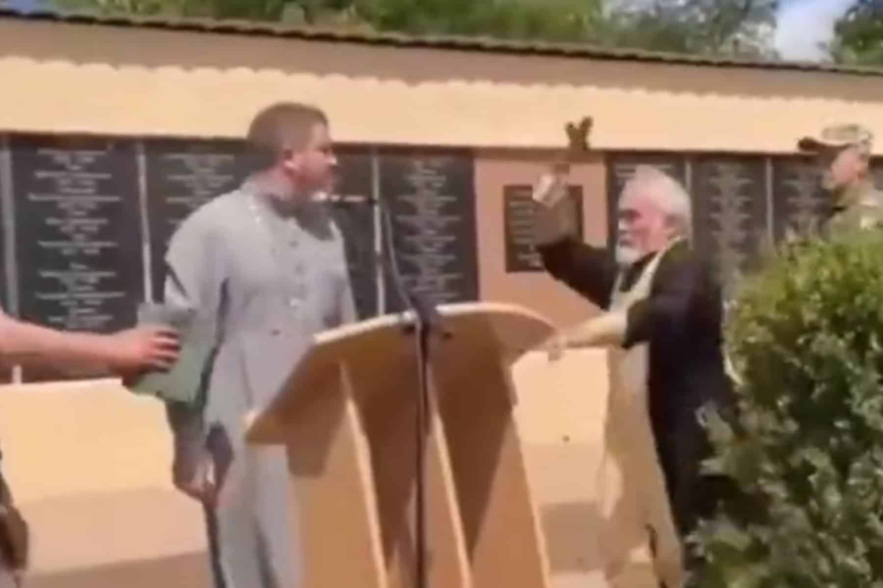 وطن- انتشر عبر مواقع التواصل الاجتماعي مقطع فيديو يوثق مهاجمة كاهن من الكنيسة الأورثوذكسية الروسية كاهنا من الكنيسة الأورثوذكسية الأوكرانية، بسبب اتهام الأخير للكنيسة الروسية بمساعدة “المحتلين” الروس في غزوهم لأوكرانيا.
