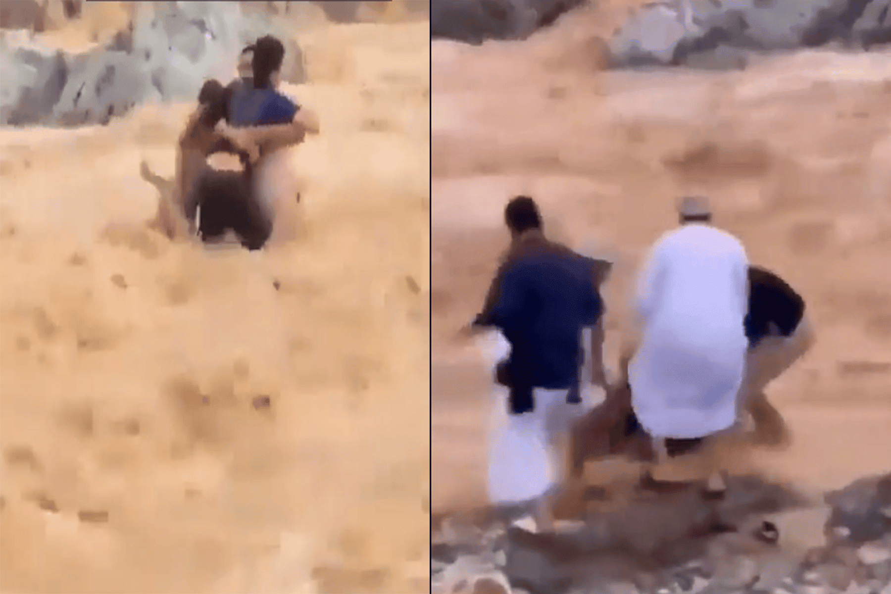 وتابع “أتينا بحبل بمساعدة أبي وأخي ولففته على جسمي ونزلت للوادي، وتم الإنقاذ بحمد الله ولُطفه”.