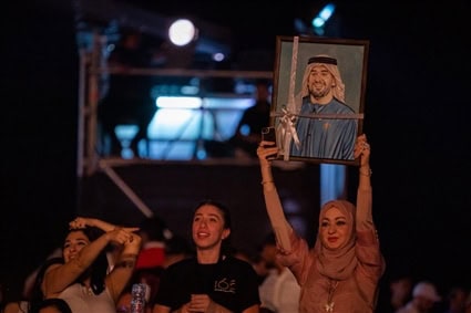 ولم ينسى حسين الجسمي كعادته في حفلاته، بحسب النشطاء، التطبيل لرئيسه محمد بن زايد عبر أغانيه، وكذلك ملك الأردن عبدالله الثاني وامتداحهم.