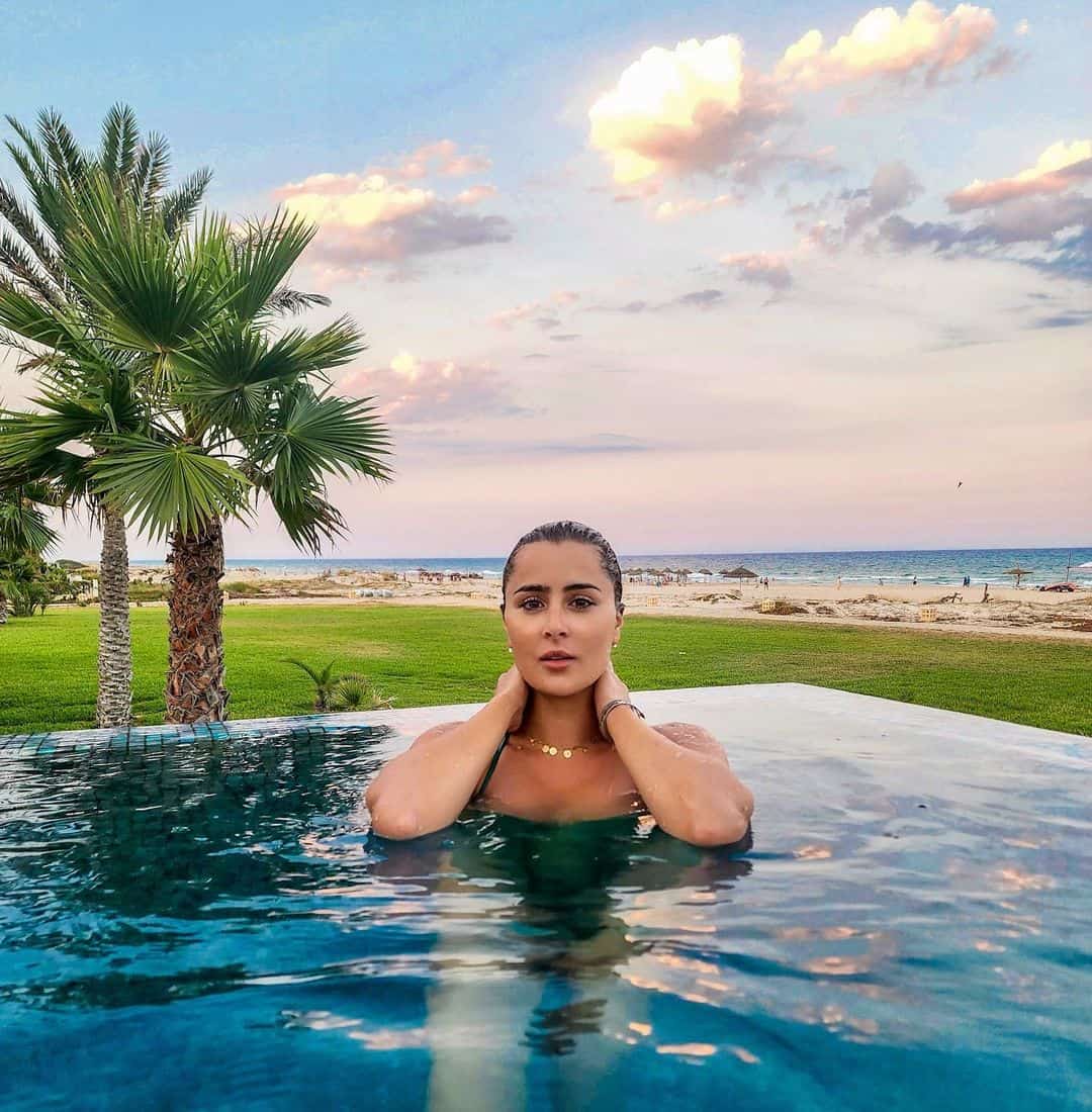 التونسية عائشة بن أحمد بالمايوه داخل حمام السباحة (شاهد)
