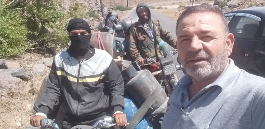 وظهر الناصر، في الصورة، إلى جانب مهربين على دراجتين ناريتين، محملتين بقوارير غاز ومواد أخرى.