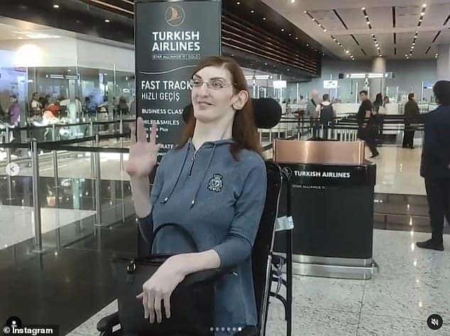 وطن– صعدت أطول امرأة في العالم إلى السماء لأول مرة في حياتها، بعد أن قامت الخطوط الجوية التركية بتكييف إحدى طائراتها لتلائم هيكلها الشاهق، الذي يبلغ ارتفاعه 7 أقدام.