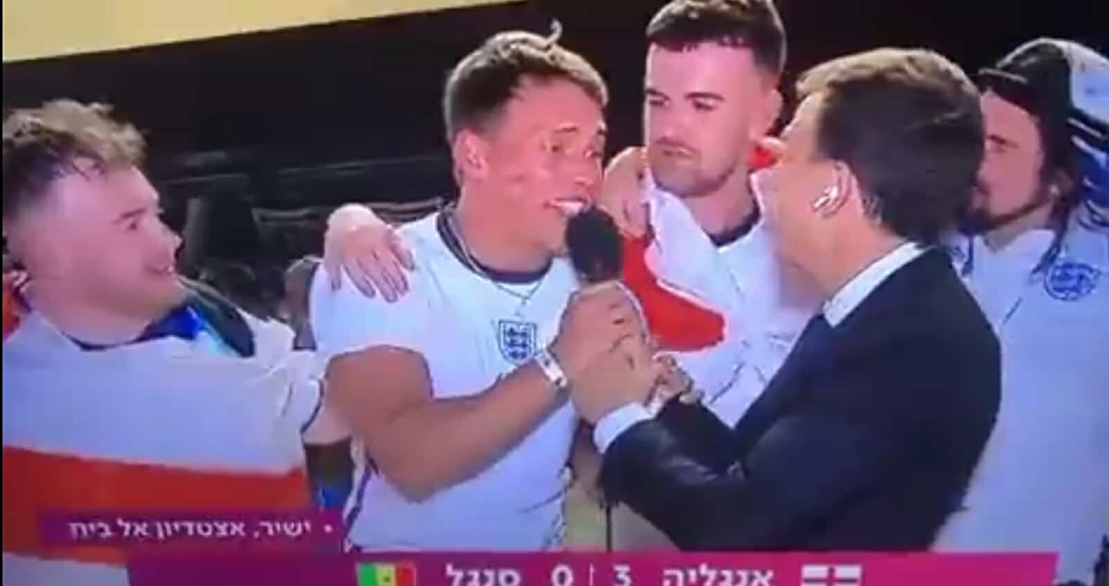 ووفقاً لمقطع فيديو متداول رصدته “وطن“، فبينما كان مراسل إحدى القنوات الإسرائيلية يستطلع آراء المشجعين الإنجليز بعد فوز المنتخب الإنجليزي على السنغال والتأهل لربع نهائي كأس العالم، صدمَه مشجع إنجليزي وصرخ: “Free Palestine”.