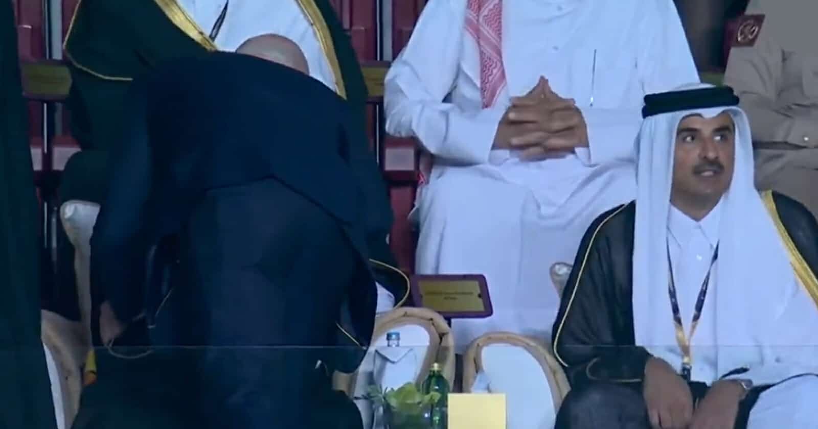 إنفانتينو يقبل رأس والد أمير قطر في حضرة الشيخ تميم (فيديو)