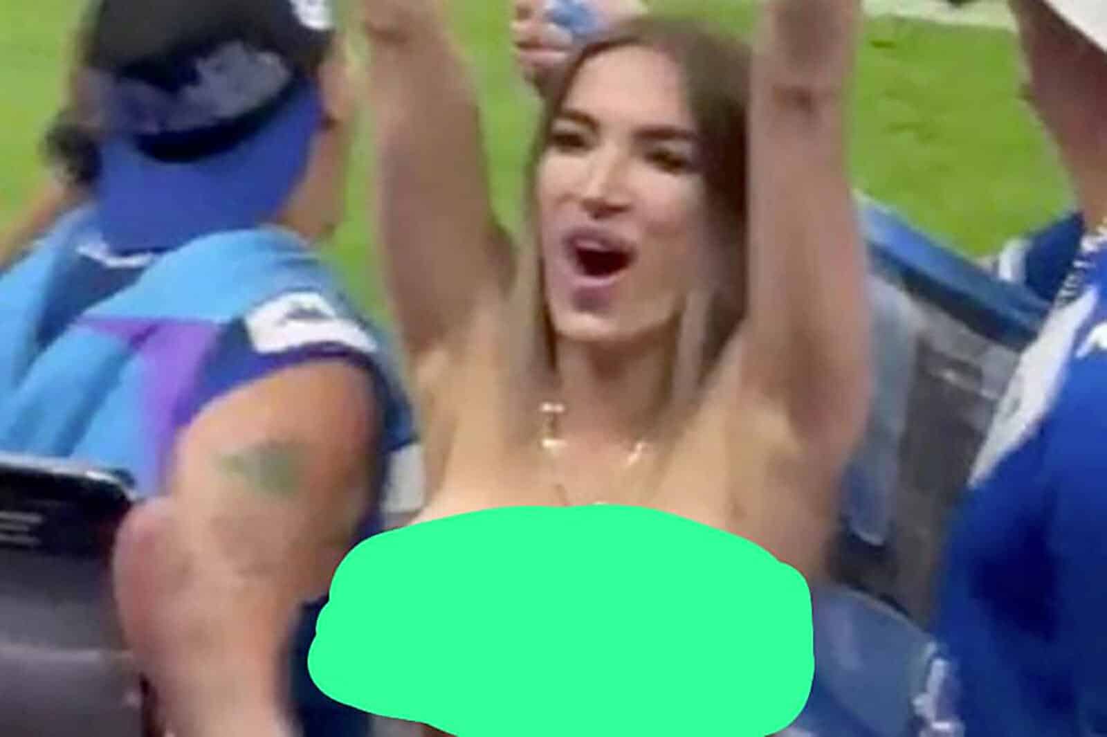 المشجعة قامت بنزع ملابسها العلوية ورقصت بثدييها احتفالاً بفوز منتخب بلادها بكأس العالم