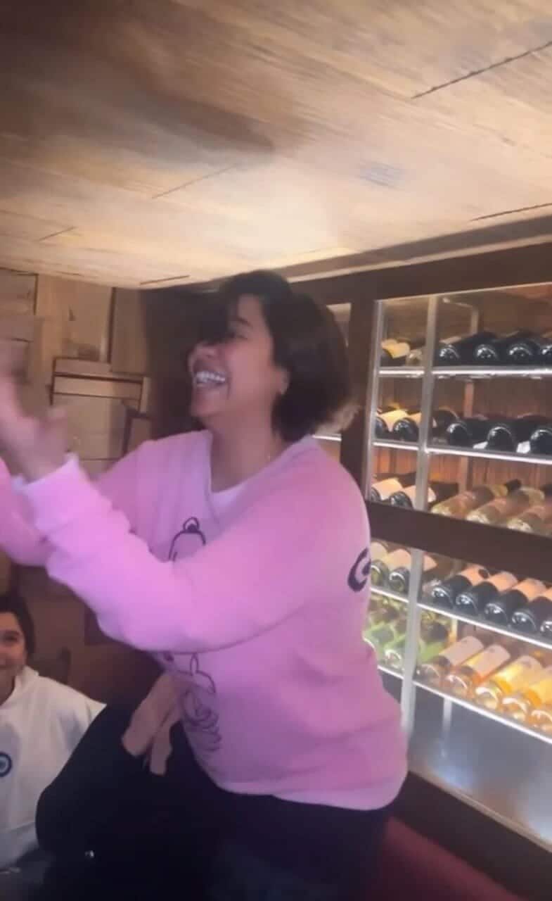 ووقفت شيرين على أحد الكراسي، وانخرطت في وصلة الرقص الساخنة على أنغام إحدى أغنياتها.