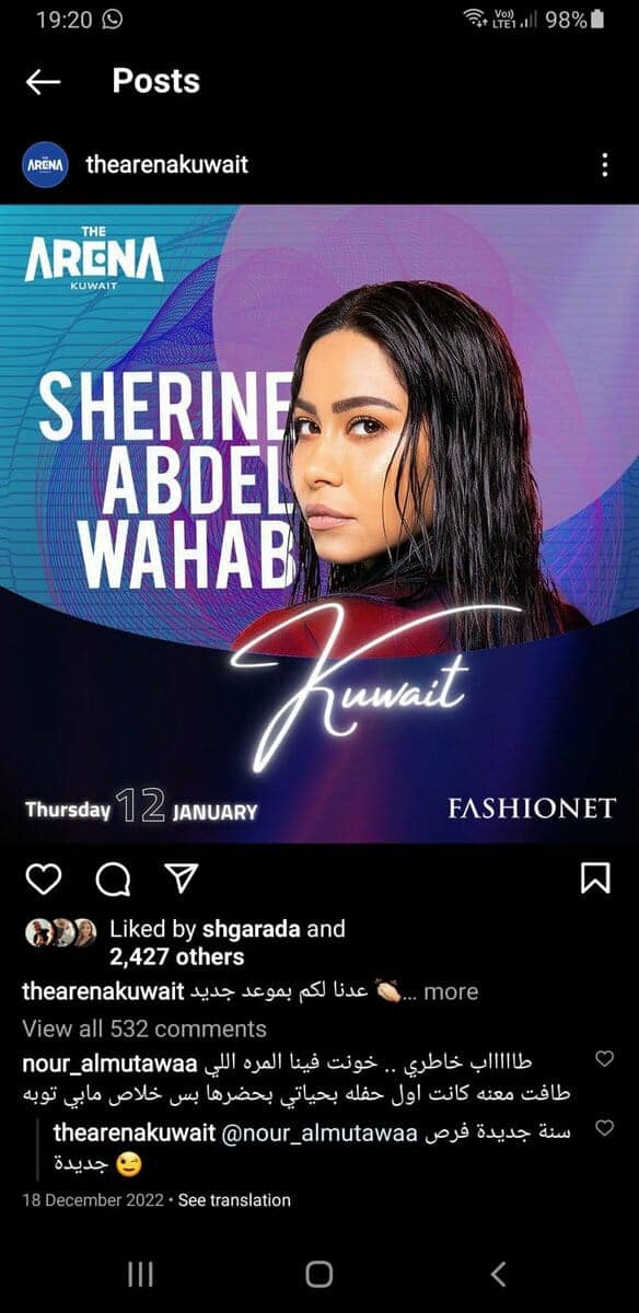 وتستعدّ شيرين عبدالوهاب إلى لقاء جمهورها في الكويت، في 12 يناير في الأرينا.