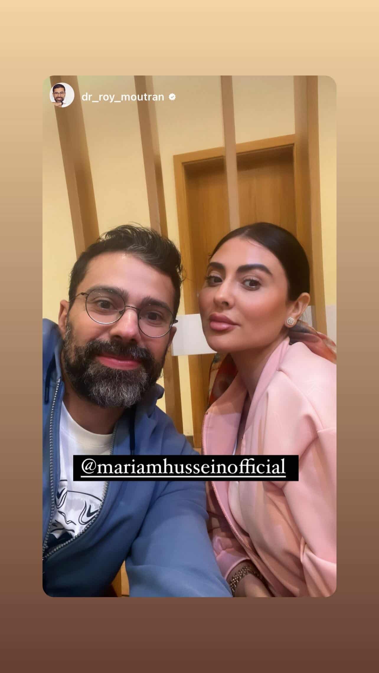 حيث شاركت مريم حسين متابعيها عبر “انستجرام”، صوراً لها برفقة الطبيب اللبناني روي مطران، المتخصص بالتجميل والأمراض الجلدية.