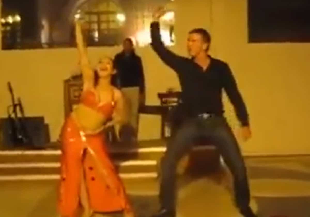 الفيديو المتداول على نطاق واسع، يظهر شخصاً -زعم متداولو المقطع أنه السائح الروسي– وهو يتمايل على أنغام الموسيقى بجانب راقصة في حفل صاخب.