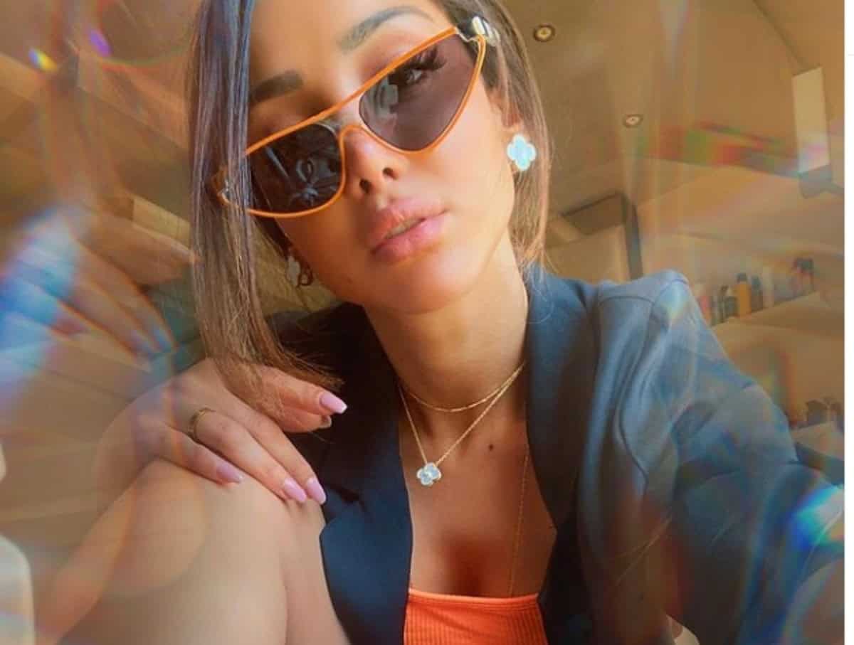 وارتدت بسمة بوسيل ليجن أسود مع توب برتقالي نصف بطن، واستعرضت مفاتنها تماماً على طريقة جورجينا شريكة كريستيانو رونالدو.