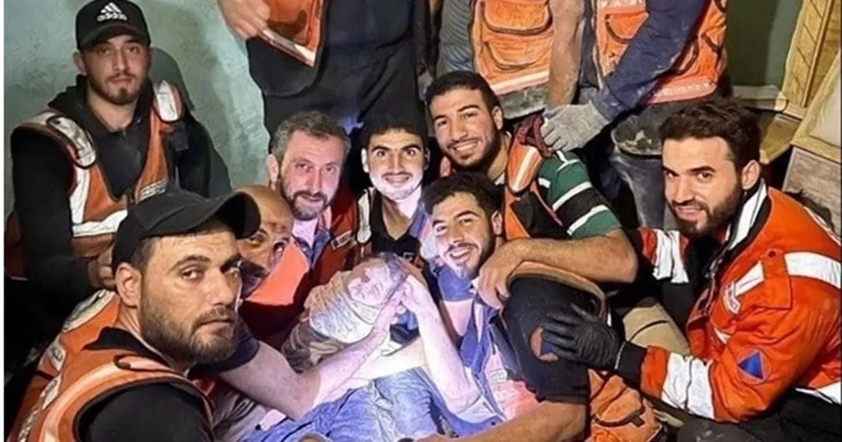 According to activists, Gaza civil defense personnel successfully extracted the infant from the debris, offering a glimmer of hope after the destruction caused by the Israeli occupation’s airstrikes.