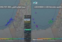 It was found that the Israeli aircraft is of the BOEING 707-300 model, one of the military aircraft operated by the Israeli army. The aircraft bears its own identification code: HEX:738A01. Flight tracking on “adsbexchange” shows that it flies for hours above the Gaza Strip and its waters, then enters Egypt before returning to the occupied territories.