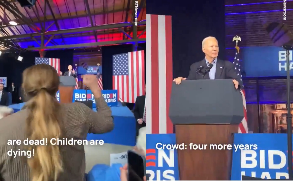 The video documented the supporter’s words directed at Biden: “You are a dictator, Joe. You are committing genocide; tens of thousands of Palestinians have died, and children are dying.”