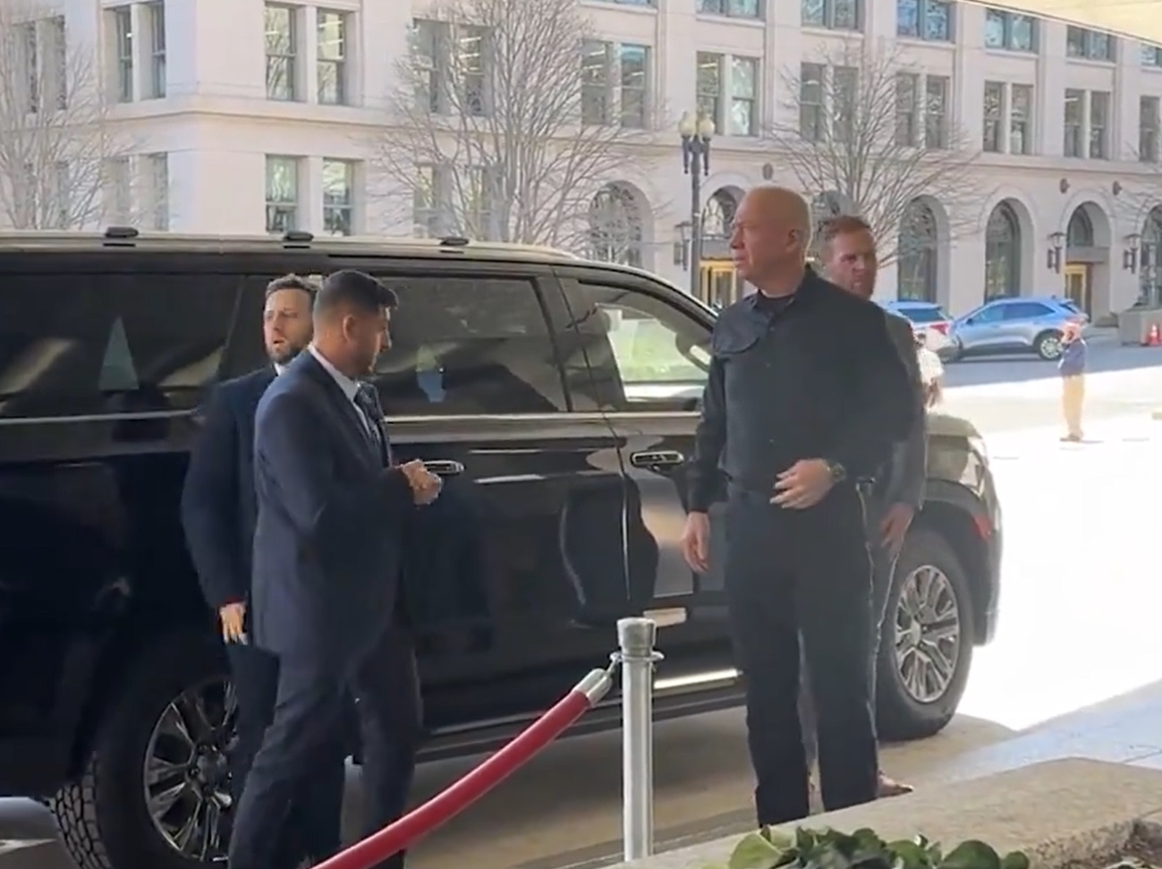 Footage showed Galant stepping out of a car that brought him to the US State Department headquarters, while chants of “Free Palestine” echoed in the background.