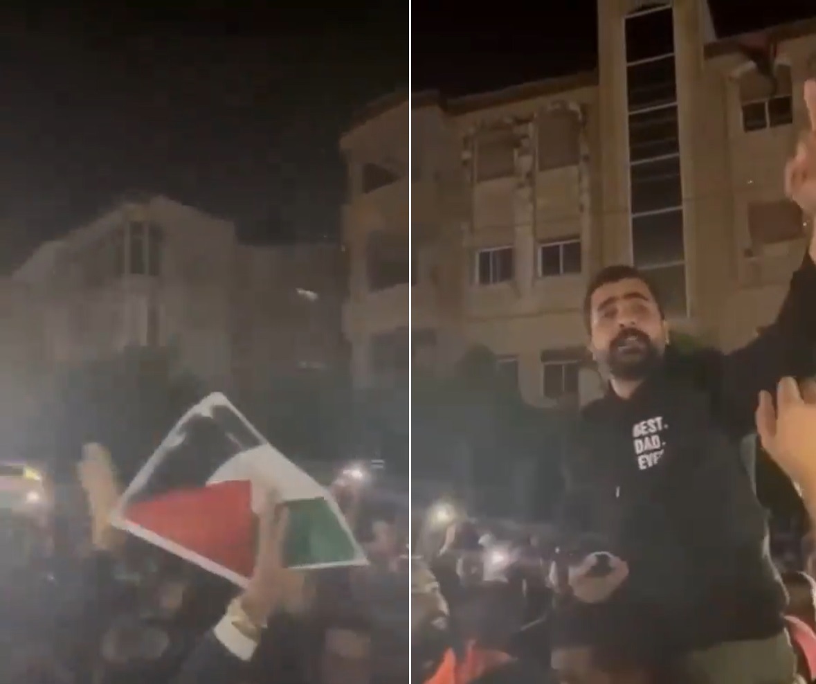 Watan-A video clip circulated, showing how protesters near the Israeli embassy in the Jordanian capital, Amman, received the news of the stabbing incident that occurred east of Ashdod.