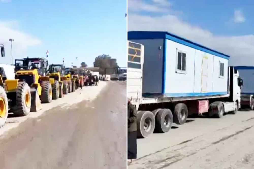 Watan-An Egyptian source at the Rafah border crossing stated that the first batch of engineering vehicles has begun moving from the crossing toward the Israeli Kerem Shalom crossing in preparation for entry into the Gaza Strip. The source added that several bulldozers and rubble transport trucks have moved from Rafah toward Kerem Shalom for inspection before entering Gaza.