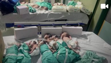 Watan-On a white hospital bed in Jordan, a small body lies surrounded by medical equipment struggling to save what remains…