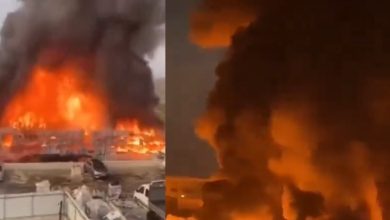 Watan-A massive fire broke out in the Royal Plastic Factory in the city of Hebron, Palestine, and the flames rose…