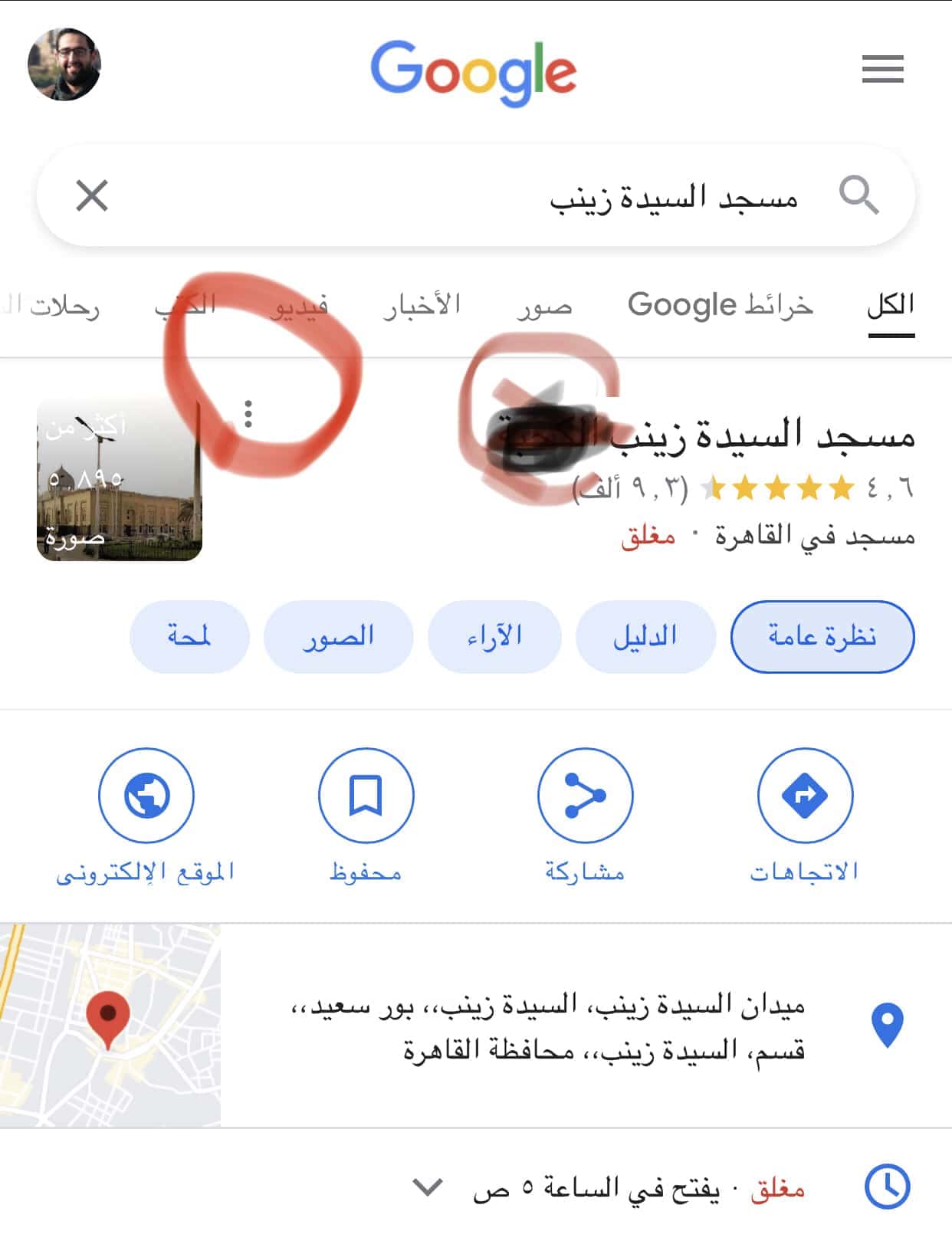 مسجد السيدة زينب.. خرائط “جوجل” تضيف لفظاً مسيئاً لحفيدة الرسول! (شاهد)