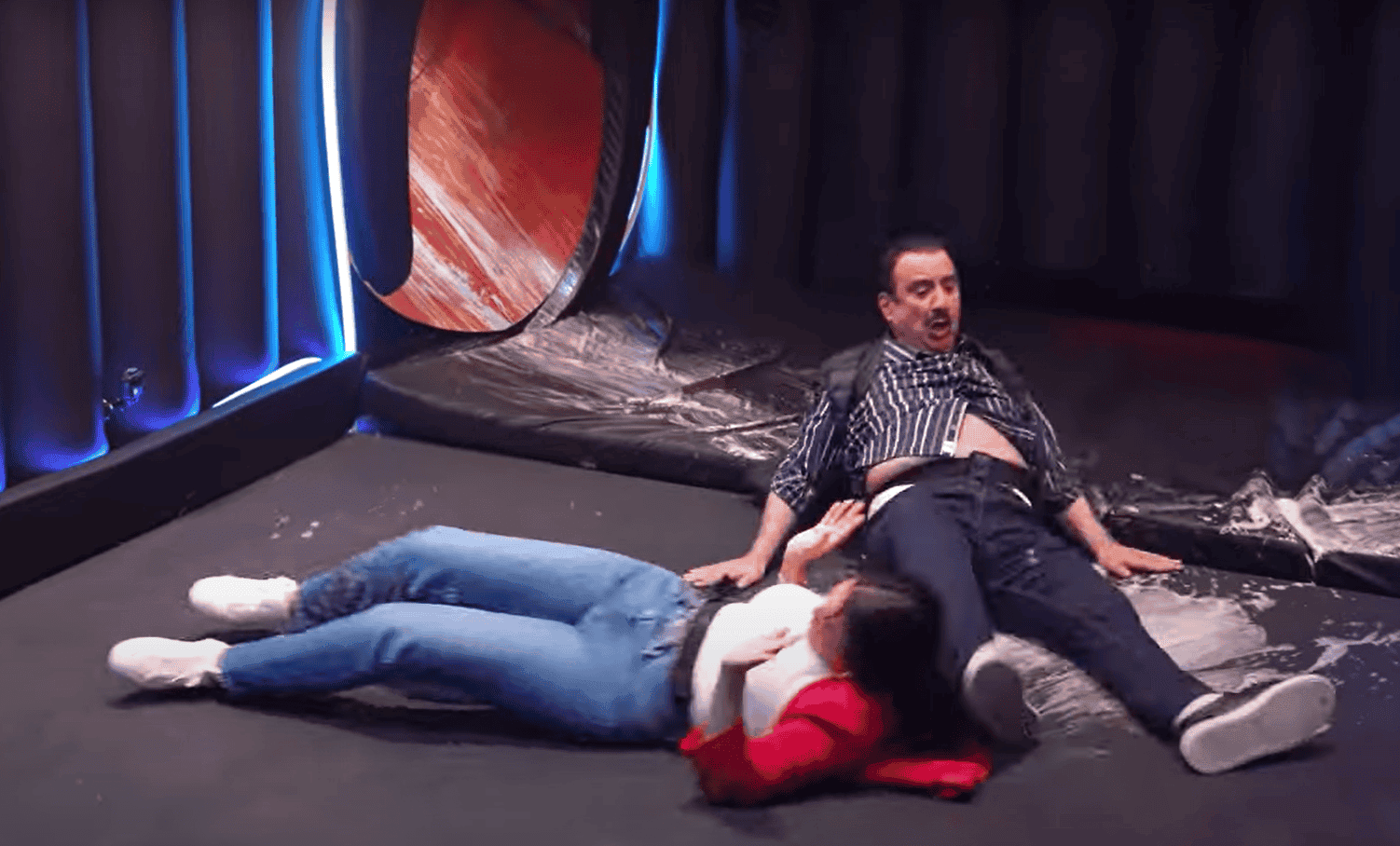 اصطدام عنيف بيسرا اللوزي.. إصابة نسرين أمين في “رامز جاب من الآخر” (فيديو)